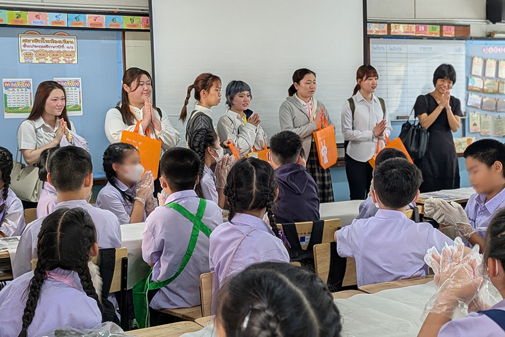 全8日間の日程の中で現地大学の日本語学科の学生との交流や、小学校への訪問、タイ料理の実習、ムエタイ体験など本学の研修旅行だからこそできる体験ばかりでした。